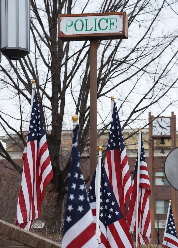 In Provo, flags waved from Center Street on Monday, and blue ribbons were tied to nearly every light pole and tree in town. Shinners’ picture stood on a stand outside the department under the “Wall of Honor” recognizing five other fallen Provo police officers.