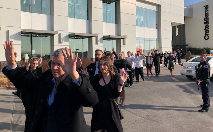 Police eventually escorted hundreds of people out of the mall, each walking with their hands in the air. Later Sunday afternoon, authorities allowed employees back in to gather any belongings they'd left behind. Fonseca, who returned to lock up the store, said the mall's interior was eerie, littered with abandoned strollers and shopping bags that people had dropped while fleeing.