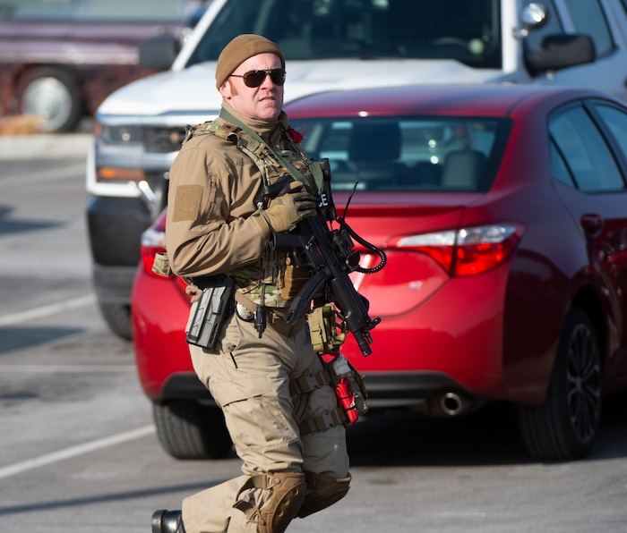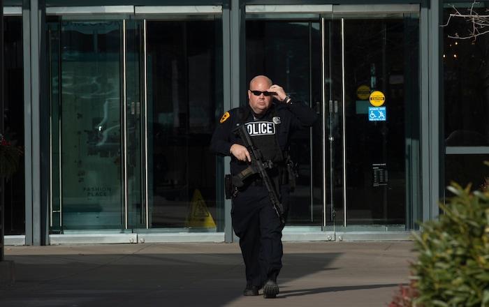 (Rick Egan | The Salt Lake Tribune) Police prepare to enter the mall in search in search of the suspect after a shooting at the Fashion Place Mall, in Murray, Sunday, Jan. 13, 2019.