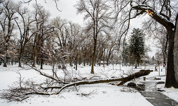 Downed tree limbs in Salt Lake City's Liberty Park after a storm on Friday March 29, 2019.