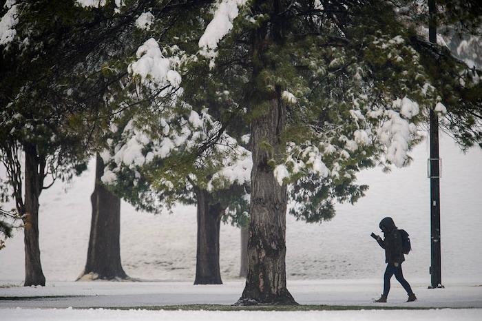 Snow in Salt Lake City's Liberty Park after a storm on Friday March 29, 2019.