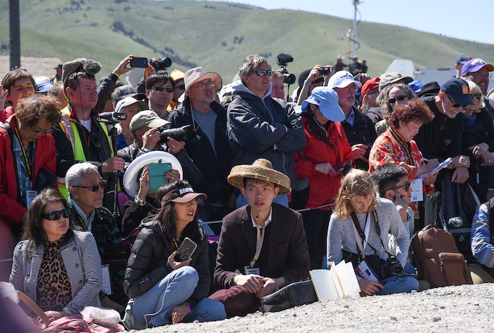 (Francisco Kjolseth | The Salt Lake Tribune) People pack in to get a better view of the festivities on Friday May 10, 2019, in celebration of the 150th anniversary of the completion of the transcontinental railroad at Promontory Summit where the two rails met back on May 10, 1869.