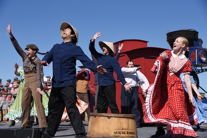 That oversight was corrected this time, as hundreds of Chinese Americans were in the crowd, and Chinese culture was well represented on stage. A “lion dance” was performed at the start of the ceremony, and Chinese workers were included for the first time in the annual re-enactment of the driving of the Golden Spike. And the Chinese, along with Irish, free blacks and Mormons, were depicted in “As One,” a 30-minute musical-theater presentation about the railroad’s creation and completion.