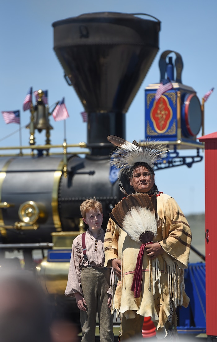 (Francisco Kjolseth | The Salt Lake Tribune) Nino Reyos a Ute and Pueblo Indian represents the Native American Indian that was displaced by the building of the railroad on Friday May 10, 2019, during the 150th anniversary of the completion of the transcontinental railroad at Promontory Summit where the two rails met back on May 10, 1869.