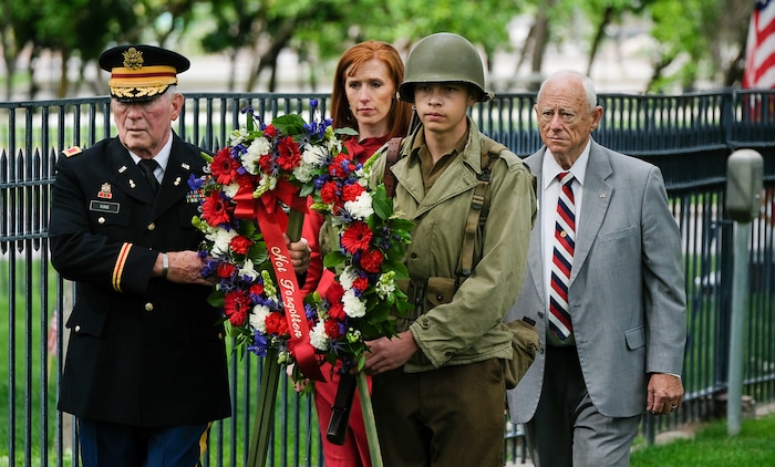 Monday’s ceremony — sponsored by the Utah chapter of the Association of the United States Army — started with a march from the Fort Douglas Museum to the cemetery. It included patriotic music, the laying of a wreath at the gated entrance and concluded with the playing of taps and a military prayer.