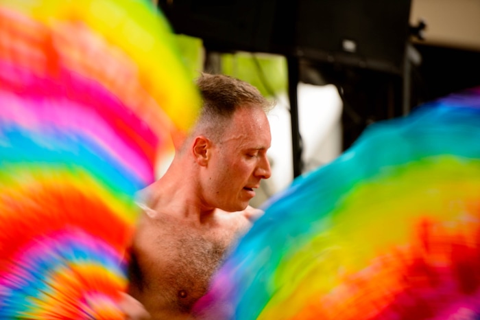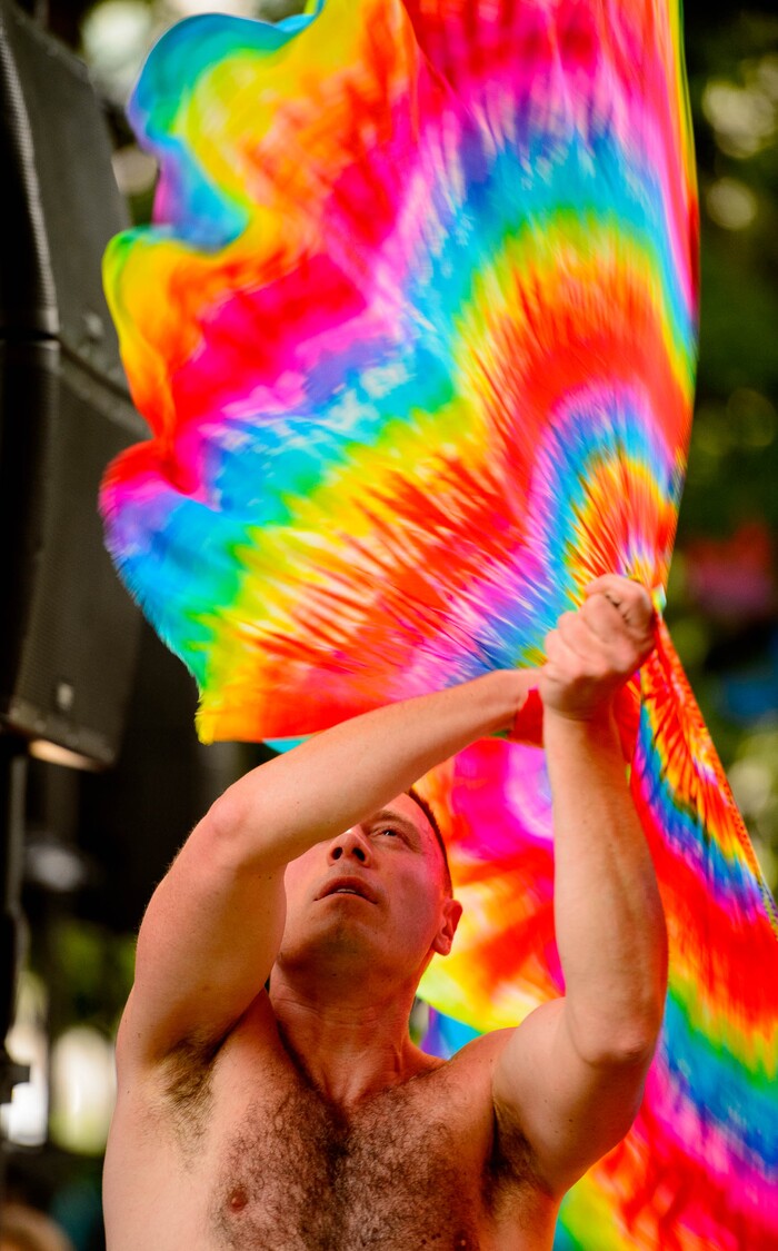 Jason Suker dancing at the Utah Pride Festival in Salt Lake City on Saturday June 1, 2019.