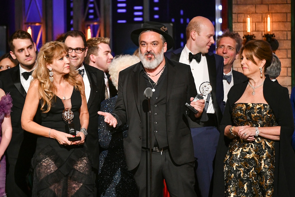 "The Ferryman's" Rob Howell took home two Tonys — for best play set designs and costumes. Robert Horn won for best book of a musical for "Tootsie."