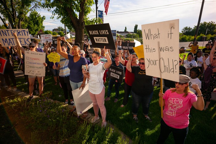 The crowd of more than 150 people had gathered Friday evening to call for Woods Cross to fire a police officer who pointed a gun at 10-year-old Hrubes, who is black. The officer pointed a gun at him on June 6 while police searched for two possibly armed suspects who’d been reported for shooting at cars in Centerville. The confrontation gained national attention after the boy’s mother, Jerri, held a news conference saying she believed the officer targeted her son because he is black.