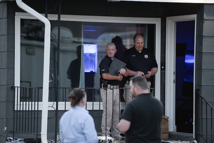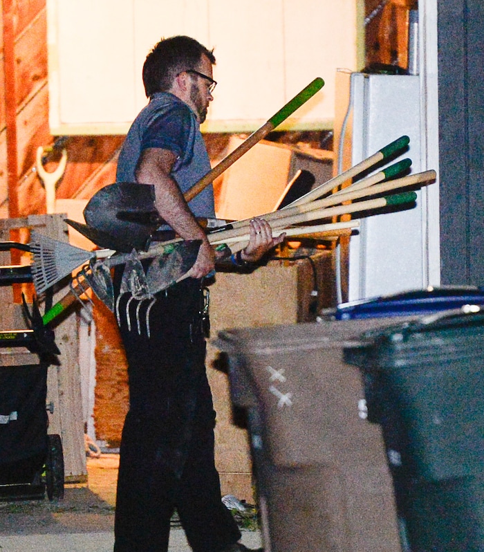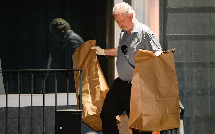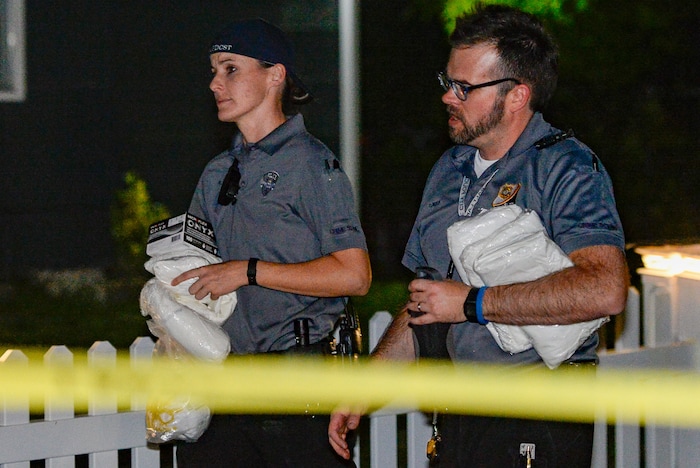 About midnight, police were seen carrying shovels into the home’s backyard. Brown paper bags of what appeared to be police evidence were placed near the front doorway.