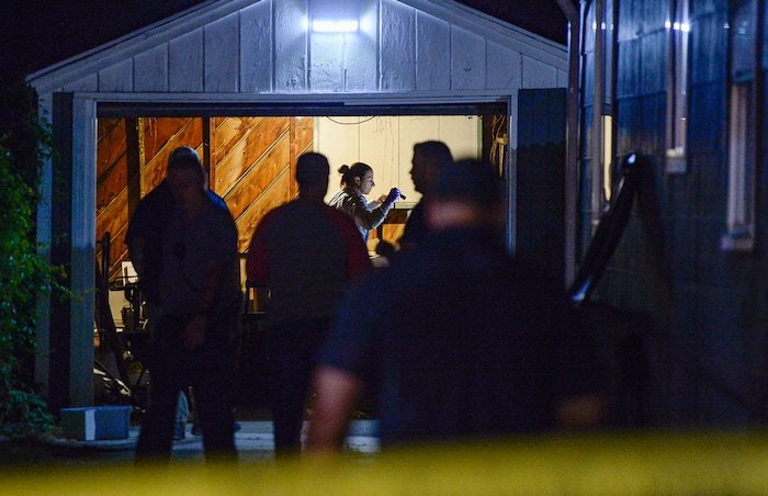 The police arrived at the house around 2 p.m. and parked a large recreation vehicle with the words “Mobile Command Center.” Detectives and crime scene technicians could be seen in the house and the unattached garage as the dusk turned into night. Police towed away a car.