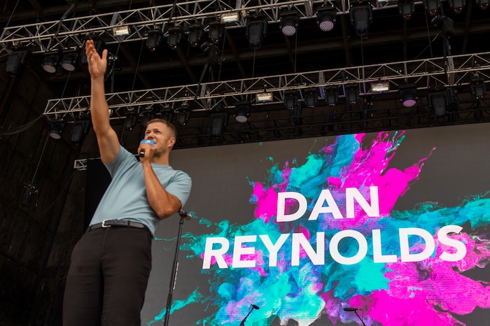 West Valley City • At 3:20 p.m. Saturday, with the sun shining on the blue chairs and green grass at Usana Amphitheatre, Dan Reynolds went on stage to welcome the early arrivals to the festival he founded.