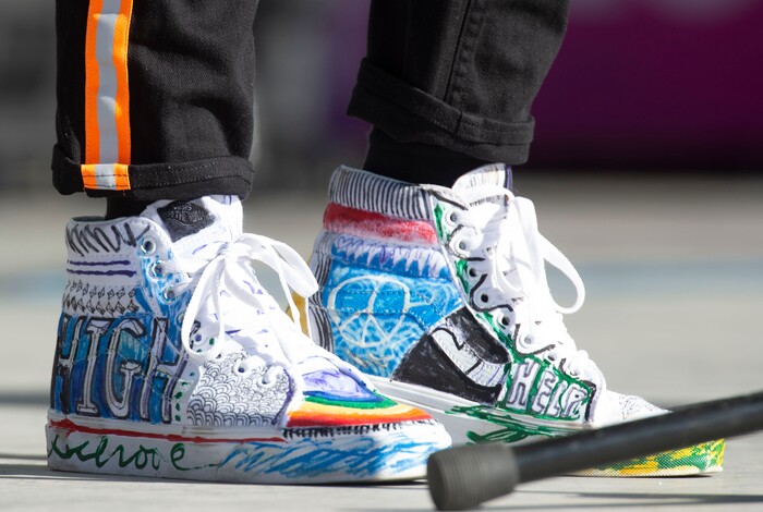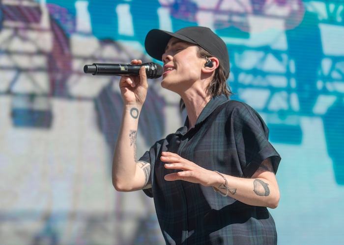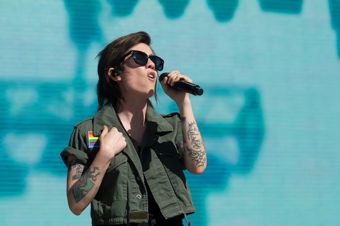 (Rick Egan | The Salt Lake Tribune) Tegan of Tegan and Sara, wears some hand-painted shoes as she performs at the LoveLoud Festival at the USANA Amphitheater, Saturday, June 29, 2019.