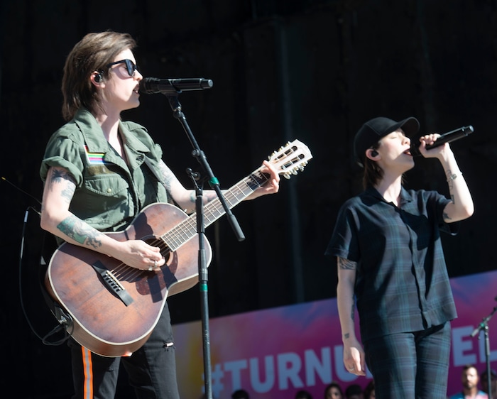 (Rick Egan | The Salt Lake Tribune) Tegan & Sara perform at the LoveLoud Festival at the USANA Amphitheater, Saturday, June 29, 2019.
