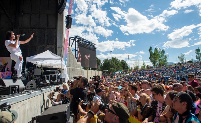 (Rick Egan | The Salt Lake Tribune) Day The crowd sings along to the band PVRIS, during the LoveLoud Festival at the USANA Amphitheater, Saturday, June 29, 2019.