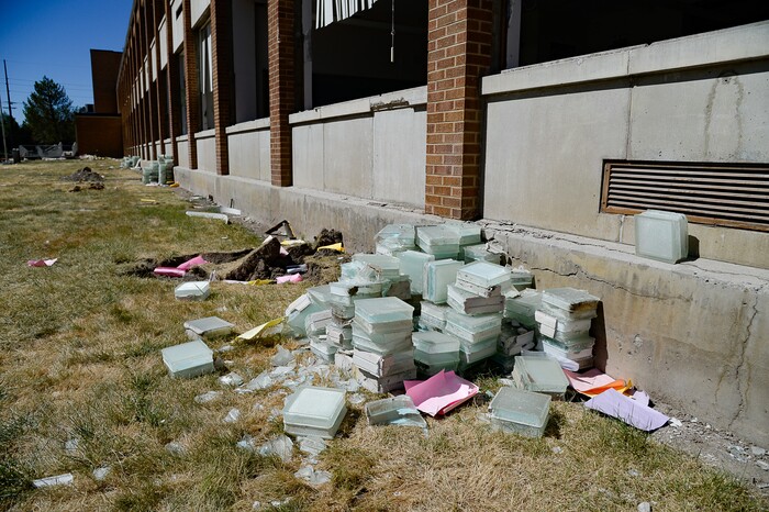 (Francisco Kjolseth | The Salt Lake Tribune) Work begins tearing down the old West Jordan Middle School, 7550 S. Redwood Road, the oldest school in the Jordan School District on Tuesday, July 16, 2019.