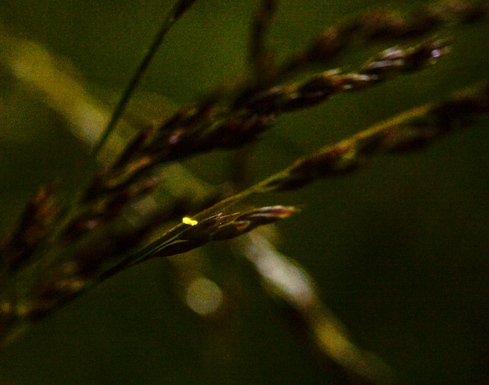 (Leah Hogsten | The Salt Lake Tribune) A firefly climbs a grass stem on a June Strawberry Moon in the 14 acres of hay field on Diane Garcia's farm near Spanish Fork. Fireflies do not migrate; they live in the hay fields year-round. The fireflies mating dance is dependent on the temperature and the wind, as they communicate with future mates by blinking or "flirting" and then mate. Fireflies have been twinkling in the hay fields of Garcia's family farm, Thompson Century Farm, since her great-great-grandfather Samuel Thompson settled the farm in 1800s. The farm and its wet, marshy habitat is perfect for the fireflies' annual mating rituals every year, roughly from late May to early July. Garcia leads tours through her fields for free, simply to share in the experience and to educate others about fireflies, their short-lived lifecycle and what endangers their fragile habitat.