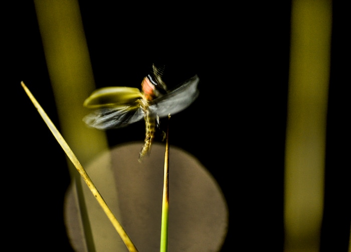 The bugs light up for only about five weeks in the middle of summer. And usually only after 10 p.m. The area also has to be marshy and dark.