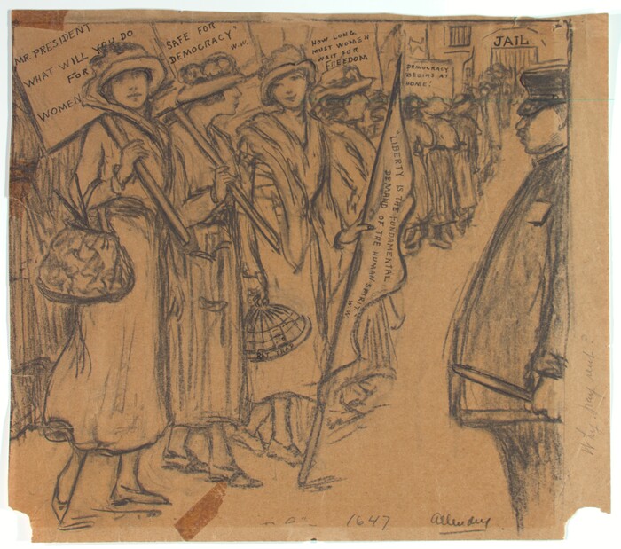 When the suffragists were arrested while picketing, Allender drew the conditions they faced in jail. Some of her early drawings used militant imagery and references to the American Revolution.
