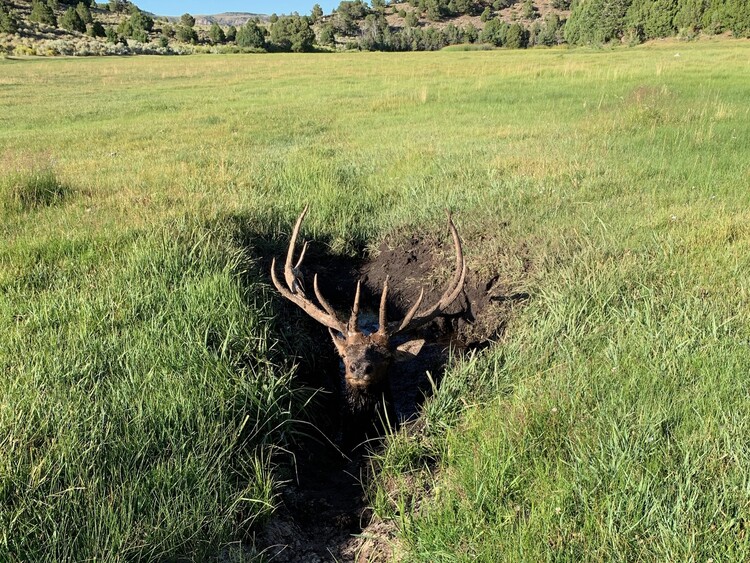 This bull elk, Lamb theorized, probably just picked an oversaturated place to wallow in and broke through the sod layer into the mucky mess beneath.