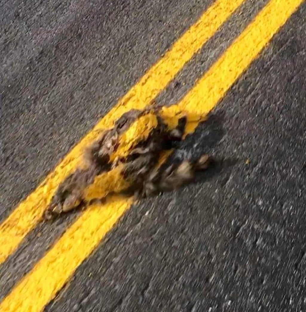 What she found was, yes, a dead animal that definitely has a yellow stripe painted over it.