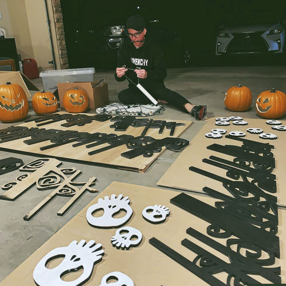 He started by taking detailed measurements of his roofline, then went through a lengthy, careful process to create digital plans for an intricate pattern reminiscent of the movie "Nightmare Before Christmas."
