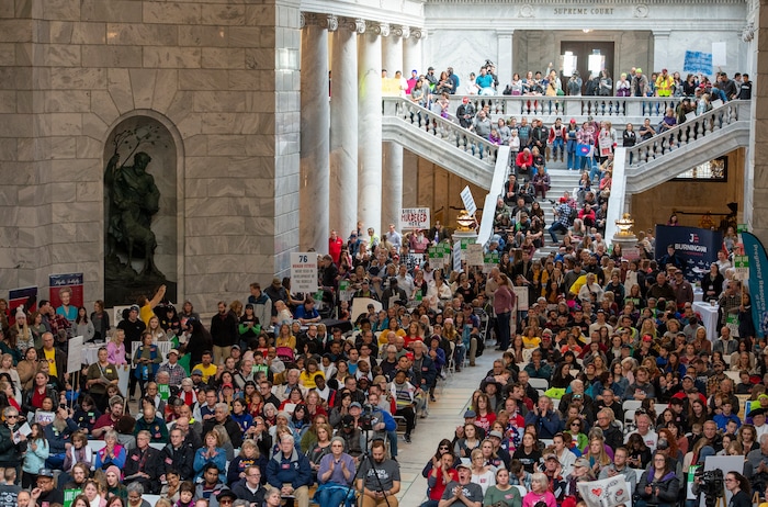 (Rick Egan | The Salt Lake Tribune) Pro life supporters listen to speakers at the March for Life Utah rally at the Utah State Capitol, Saturday, Jan. 25, 2020.