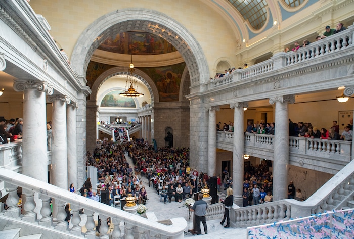 (Rick Egan | The Salt Lake Tribune) Hundreds of pro life supporters listen to speaker at the March for Life Utah rally at the Utah State Capitol, Saturday, Jan. 25, 2020.
