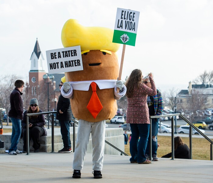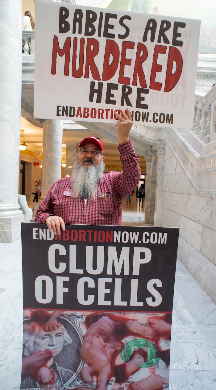 (Rick Egan | The Salt Lake Tribune) Rudy Rodriguez holds a couple of signs, at the March for Life Utah rally at the Utah State Capitol, Saturday, Jan. 25, 2020.