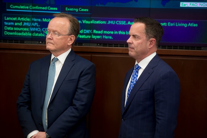 National news stations played on screens in the Emergency Operations Center. There were fewer handshakes exchanged than normal and the smell of hand sanitizer hung in the air.