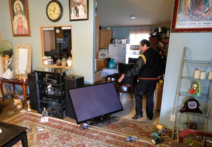 Kim Castro-Kimball, who lives at Kopper View Mobile Home Park said she was “far better off” than her neighbors — her home did not appear to suffer any structural damage, which was “quite the exception” in the area. The trailer next door was leaning badly and one down the street had completely collapsed.