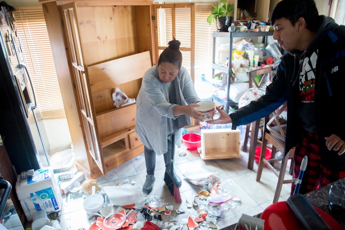 Her 5- and 7-year-old children “came running to us. They were very, very scared. They’re still scared. I told them that the earth is like big puzzle pieces that move around, and we’re going to feel the puzzle pieces move for a while.”