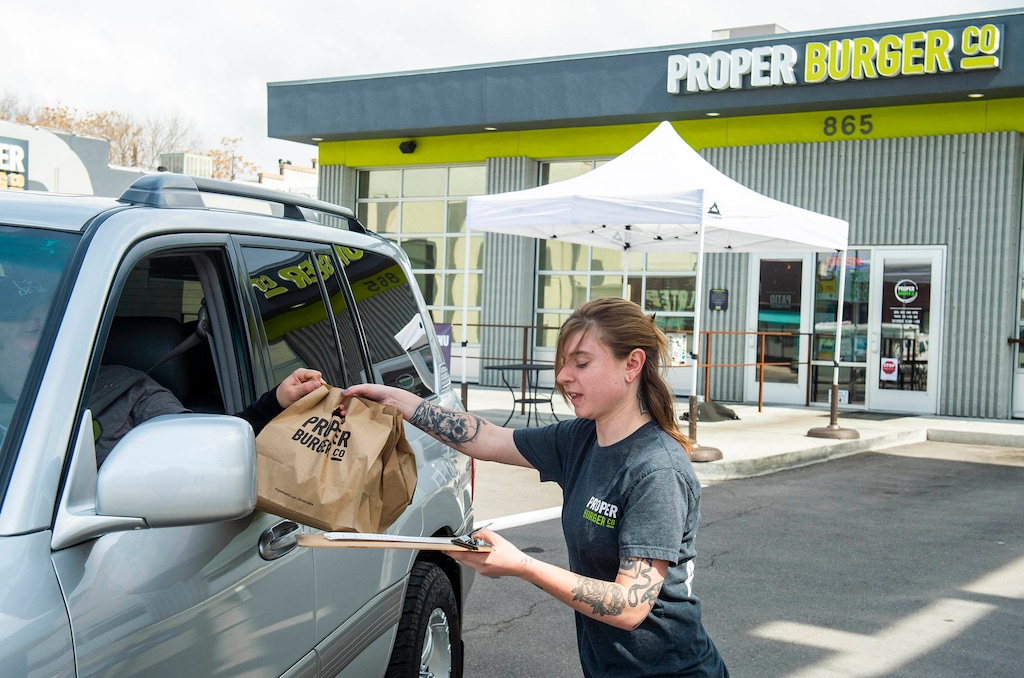 Proper Burger Co. in Salt Lake City is up and running its fast-food operation, said owner Andrew Tendick, with online and phone ordering, curbside pickup and third-party delivery services . The restaurant has set up a makeshift drive-thru in front of the building at about 850 S. Main., with large menu boards for customers.