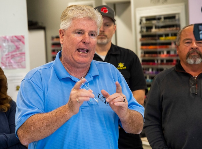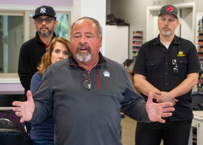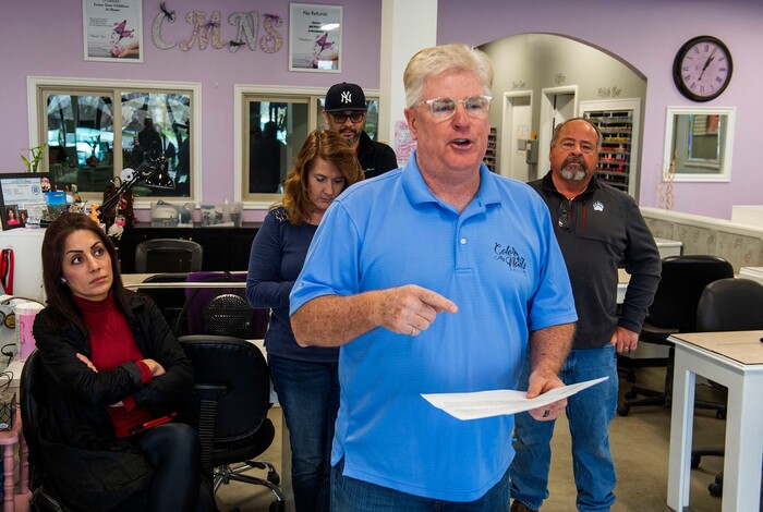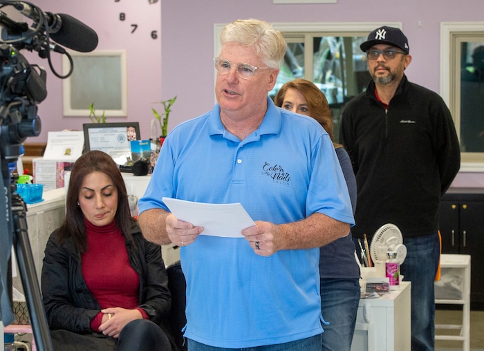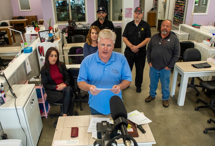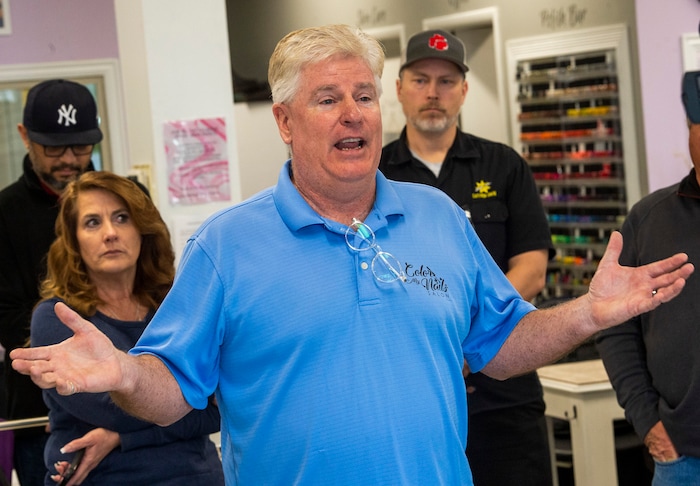 Jardine said his shop would have been humming at 1 p.m. just two weeks ago, with up to a dozen nail technicians hard at work. He choked up Wednesday during a homespun news conference held at the salon and broadcast on Facebook, pointing to its now-empty stalls.