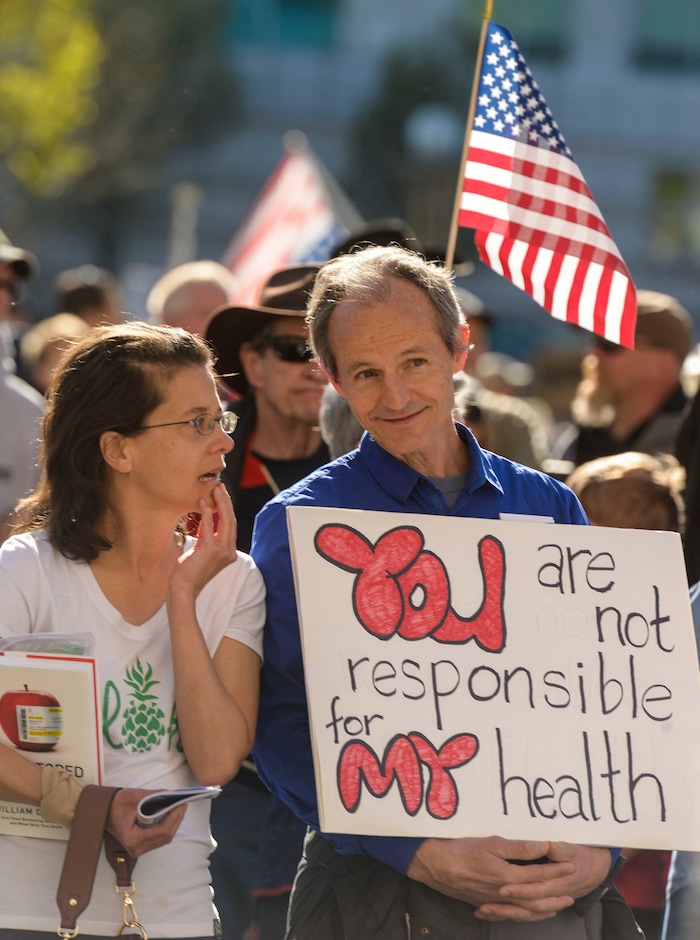 “We have to let [government officials] know, with our voice, that it’s ‘We the People’ and not 'They the Government,” rally organizer Eric Moutsos said to cheers from the group of hundreds of people who tightly packed around him in front of Salt Lake City Hall on Saturday evening.