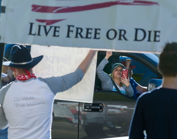 Group members point to soaring unemployment rates. They anticipate an increase in suicides as people lose their livelihoods. They say that “snitching” on neighbors for gathering is like fascism. They say Americans can make their own decisions, and those who want to open their businesses and get back to work have that right.