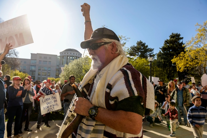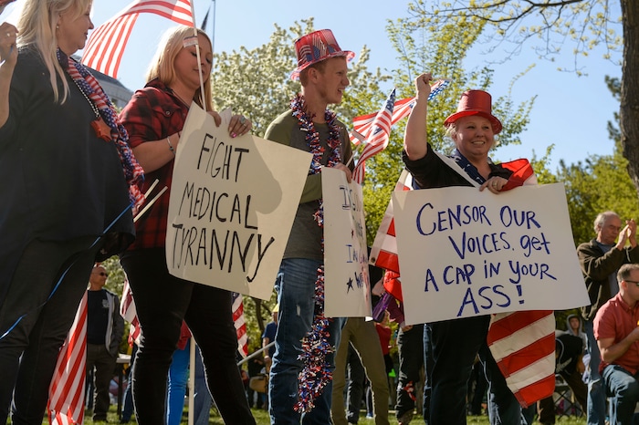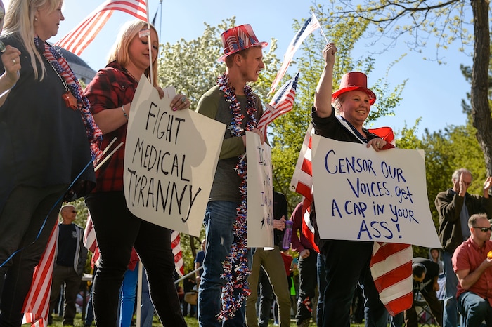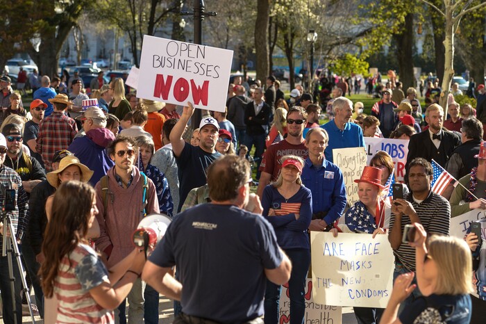 But many at the rally don’t believe politicians and medical professionals are telling the truth about the virus’s lethality. And they especially don’t believe government officials can infringe on their rights to peaceable assembly.