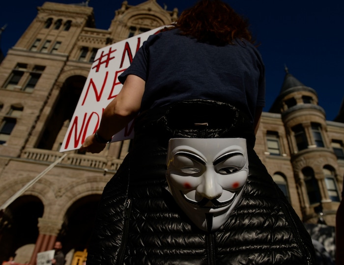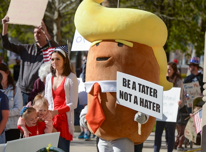 “People can’t go to work. People can’t go where they want. This is tyranny, ladies and gentleman,” said Thomas, who wore a shirt reading “Hillary for Prison 2016," and declined to give his last name to The Salt Lake Tribune.