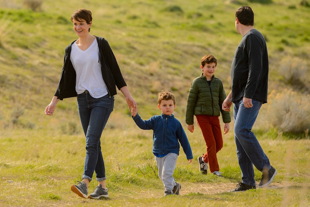 (Trent Nelson | The Salt Lake Tribune) Angela Dunn, state epidemiologist from the Utah Department of Health, on a walk with her family in the hills above Salt Lake City on Saturday, April 18, 2020. From left, Pierce Mendoza, Dunn, and Owen Mendoza.