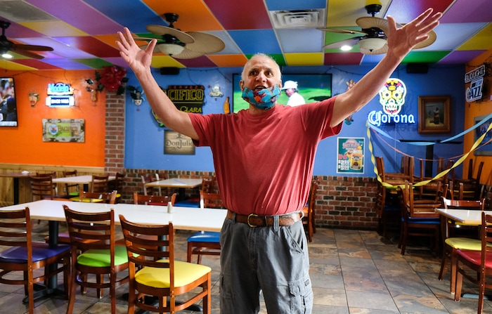 (Francisco Kjolseth | The Salt Lake Tribune) El Chihuahua Mexican restaurant owner Victor Quiñones talks about the changes made as the restaurant opens with limited dining on Friday, May 1, 2020.