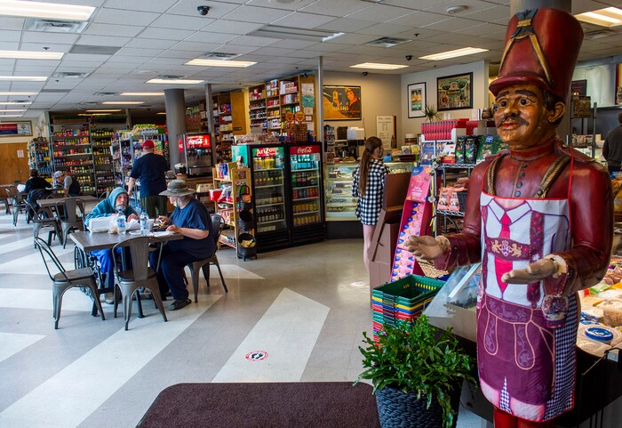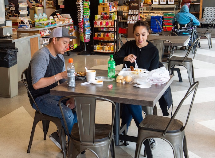 For the most part, customers seemed to follow the social distancing rules, too. They stood on the floor decals that kept them 6 feet apart. Several came in wearing masks and took their food to go. Takeout and delivery, according to health officials, are still the preferred dining methods.