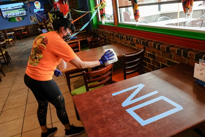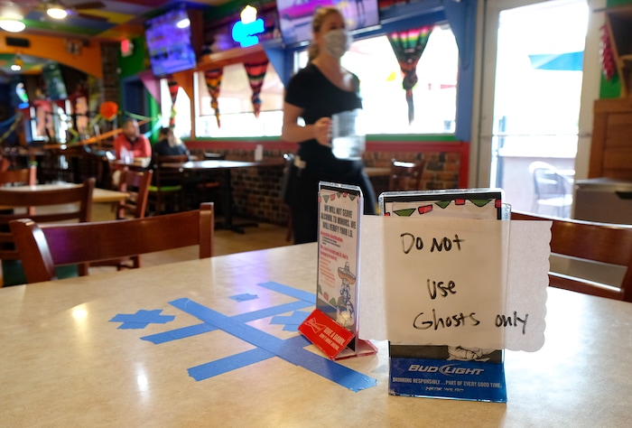 To serve customers, restaurants and bars must follow strict guidelines such as removing tables so that parties sit 6 feet apart; requiring employees to wear masks and gloves; and carefully monitoring the health of workers.