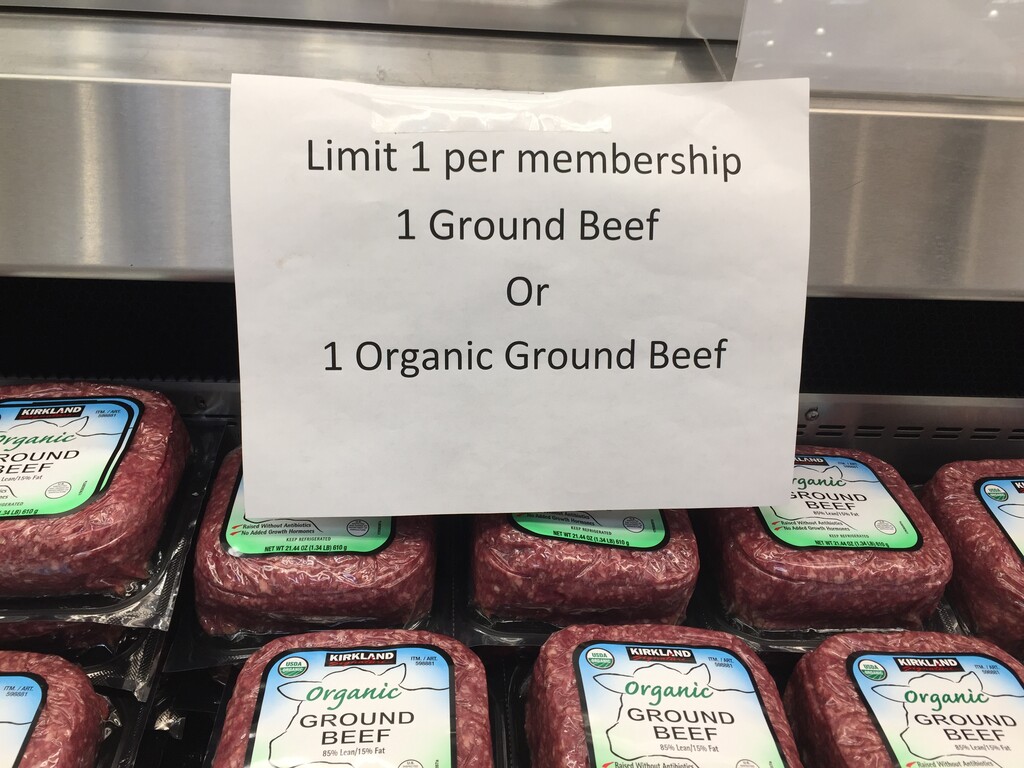 “Fresh meat purchases are temporarily limited to a total of three items per member among the beef, pork and poultry products,” the company has posted on its website. The big-box store says it has implemented limits on certain items “to help ensure more members are able to purchase merchandise they want and need.”