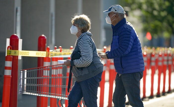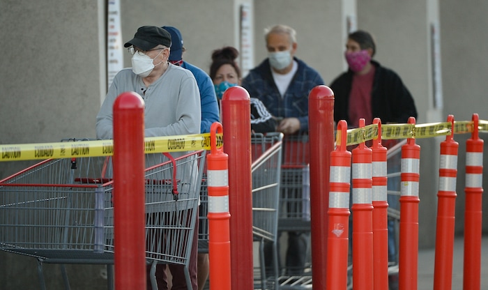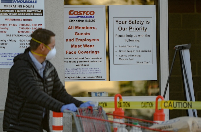 (Francisco Kjolseth | The Salt Lake Tribune) Costco begins implementing a policy on Monday, May 4, 2020, that everyone in the store, including shoppers, have to wear a mask, as people shop early in Salt Lake City during the coronavirus pandemic.