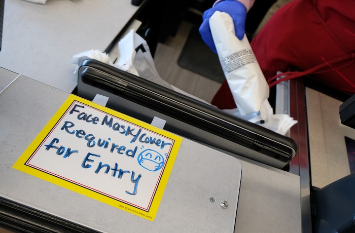 Customers who don’t want to wear a mask can order ahead for pickup. And those who arrive and discover they need a mask can buy one for 75 cents.