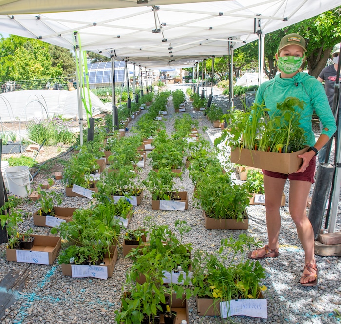 Foot-tall tomato stalks and stringy onion stems filled cardboard boxes at Wasatch Community Gardens on Saturday morning, waiting for Utah gardeners to pick them up.