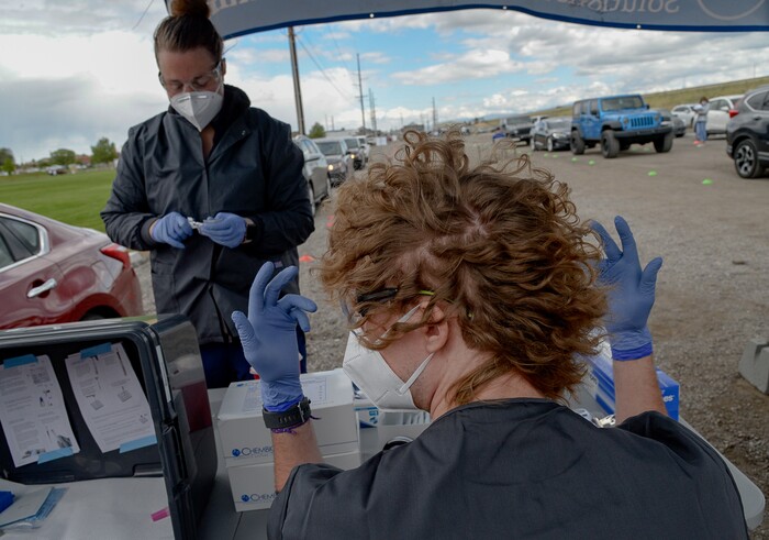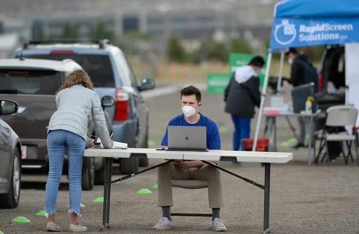 But a lot of Utahns urgently want any tool that can shed light on whether they’ve had the coronavirus. In Draper, cars stretched down the long gravel parkway in four different lanes. Tens of nurses and lab technicians stood at their windows ready to go. A small group was playing soccer in the field nearby. Everyone was wearing masks.