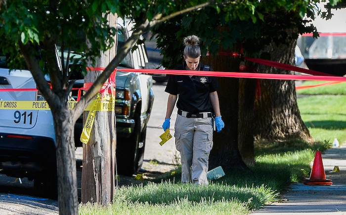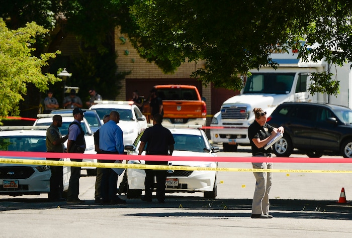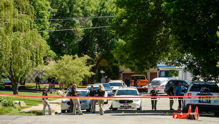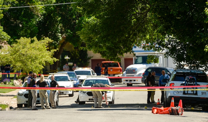 (Rick Egan | The Salt Lake Tribune) Ogden Police investigate a shooting on Jackson Ave. in Ogden, Thursday, May 28, 2020.