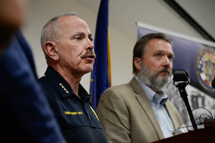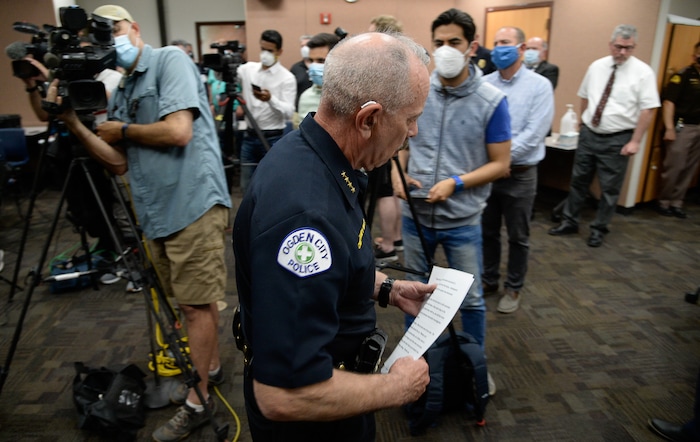(Francisco Kjolseth | The Salt Lake Tribune) Ogden Police Chief Randy Watt holds a press conference at the Ogden Police Department to talk about an officer who died after responding to a domestic violence call on Thursday, May 28, 2020, shortly after noon.