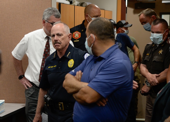 (Francisco Kjolseth | The Salt Lake Tribune) Ogden Police Chief Randy Watt leaves a press conference at the Ogden Police Department where he talked about an officer who died after responding to a domestic violence call on Thursday, May 28, 2020, shortly after noon.