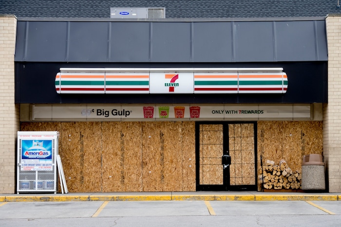 The downtown streets were largely quiet and void of crowds Sunday, save for police, cleanup crews and some folks walking their dogs, heading to jobs or buying supplies.